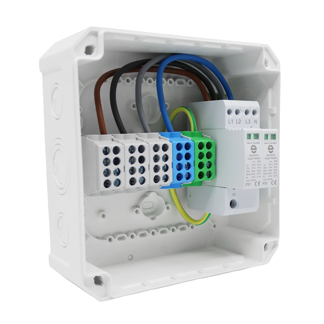 KPLB425VÖ är en komplett kopplingsbox med förmonterat överspänningsskydd Typ 2 + Typ 3, framtagen för säker elfördelning och för att uppfylla kraven på överspänningsskydd vid installation av elbilsladdare. En robust och installationsklar lösning för både inom- och utomhusbruk.