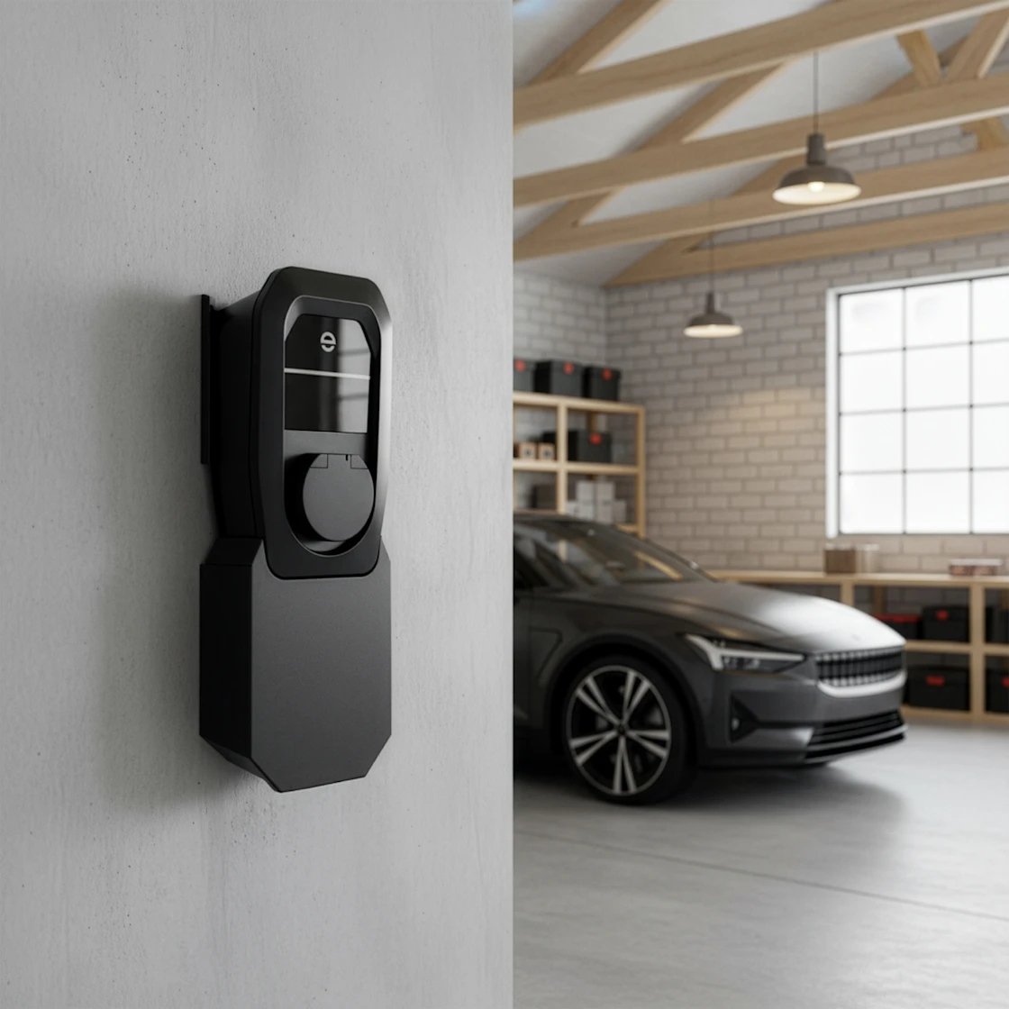 Intra är en unik elbilsladdare där design och funktion möts. All teknik placeras på insidan av huset – till exempel i garage eller förråd – medan endast en stilren panel syns på fasaden. Resultatet är en säker, smart och diskret laddlösning som smälter in i ditt hem, utan att kompromissa med prestanda.