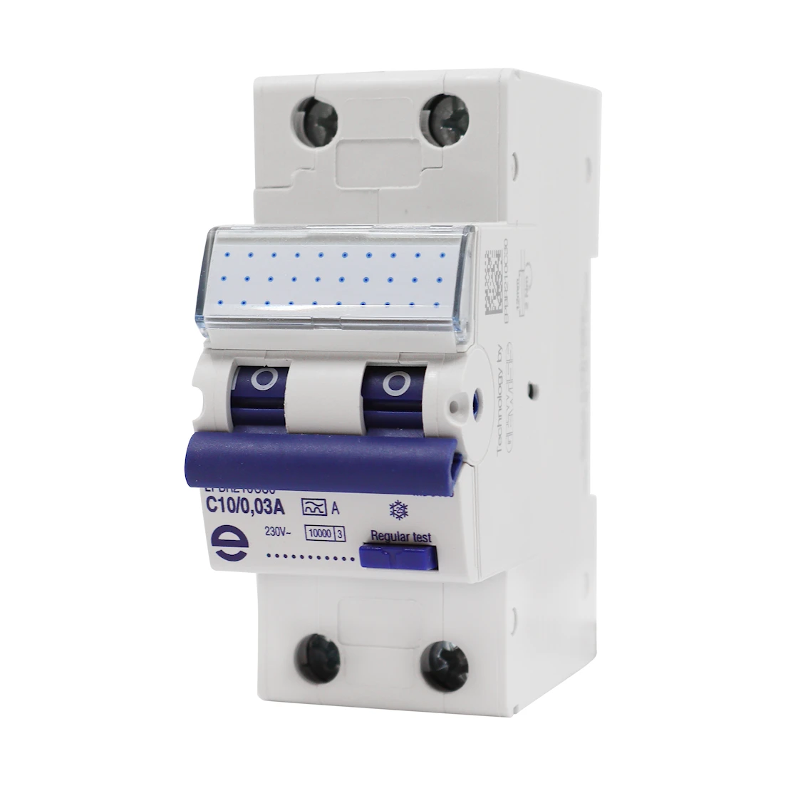 Våra 2-poliga personskyddsbrytare med C-karaktäristik kombinerar jordfels- och överströmsskydd i en kompakt enhet, vilket gör dem idealiska för bostäder och kommersiella fastigheter. Med en brytförmåga på 10 kA och märkfelström på 30 mA säkerställer de ett pålitligt skydd mot elfel.