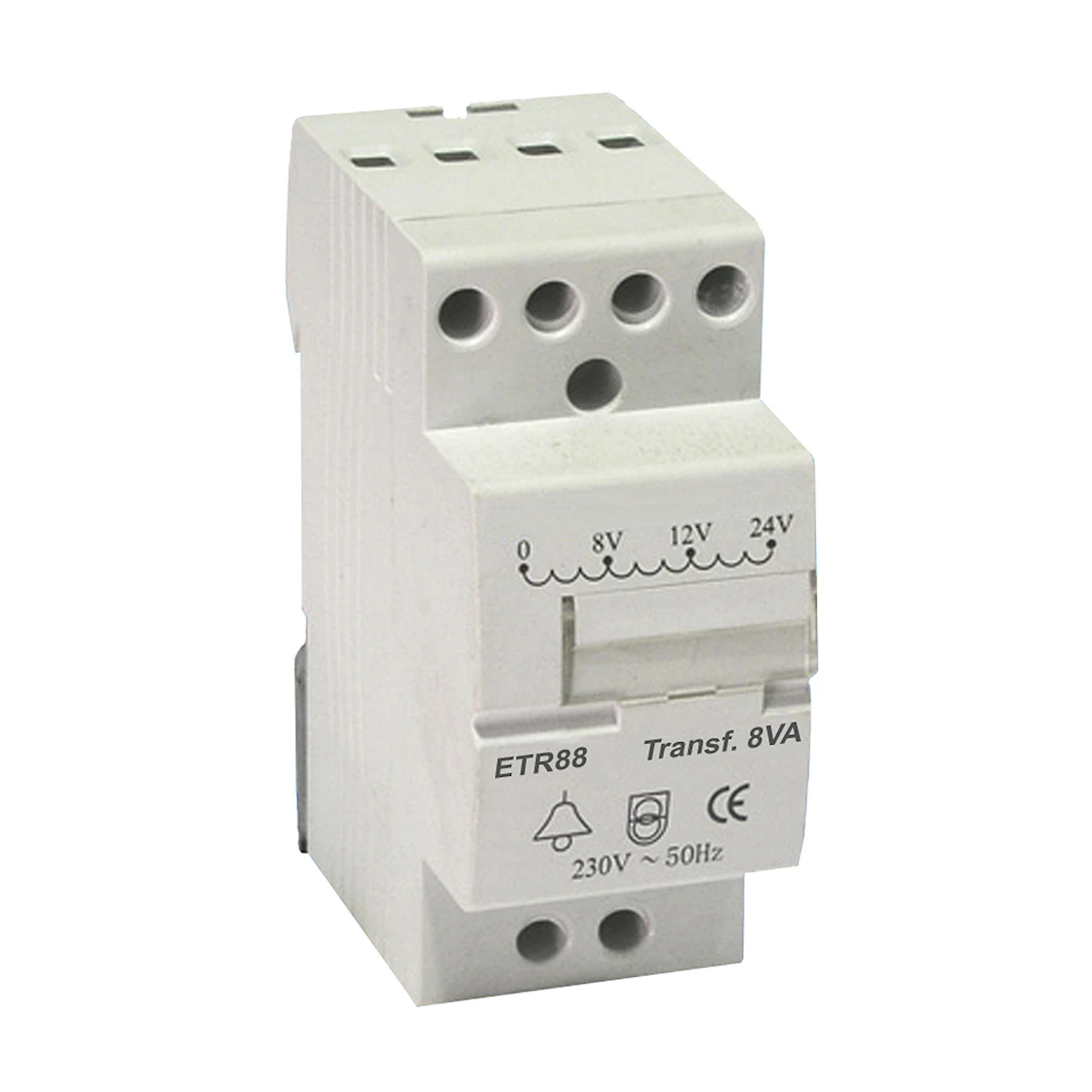 ETR88 med 3 olika sekundära spänningar om 8, 12 och 24 V AC. Transformatorn är tillverkad för att klara konstant drift av last.