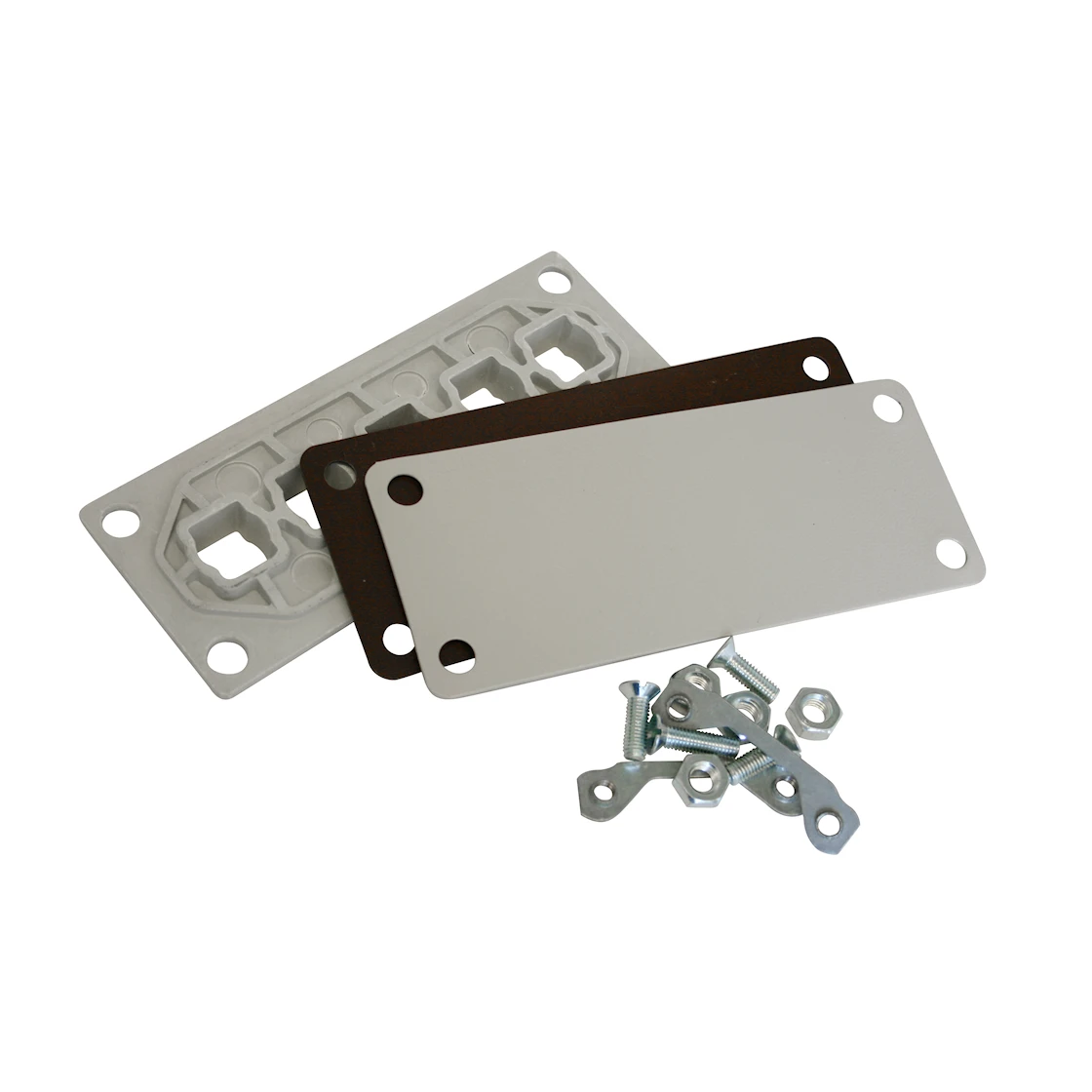 Förpackning med isolerskiva, packning och täckfläns av rostfri stålplåt. 5 hål, 24 mm i diameter.