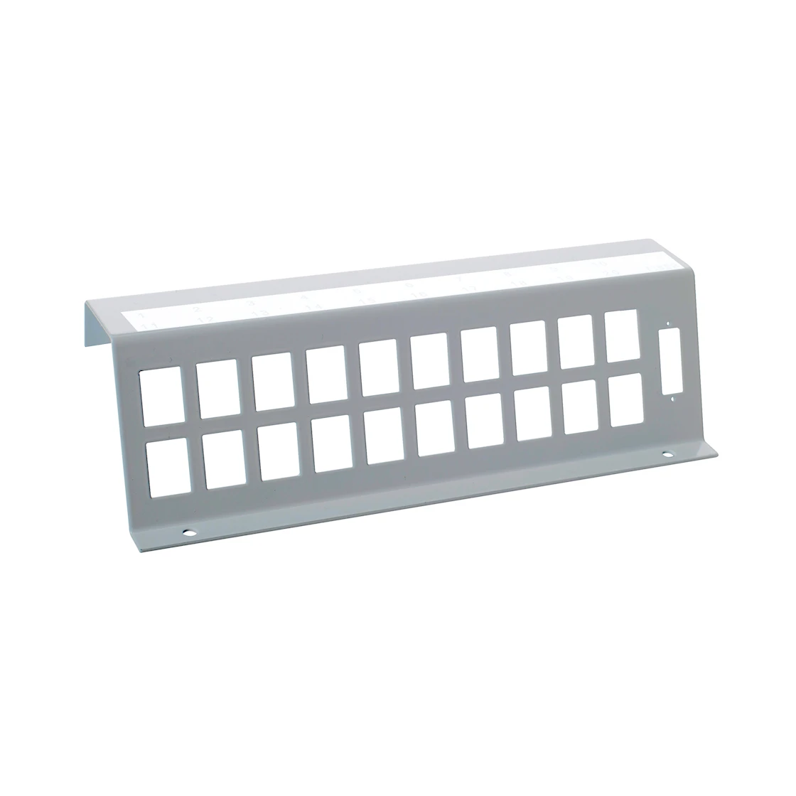 Vinklad och nummermärkt patchpanel med fiberuttag. Finns för både LexCom/Acatssi och Keystone.