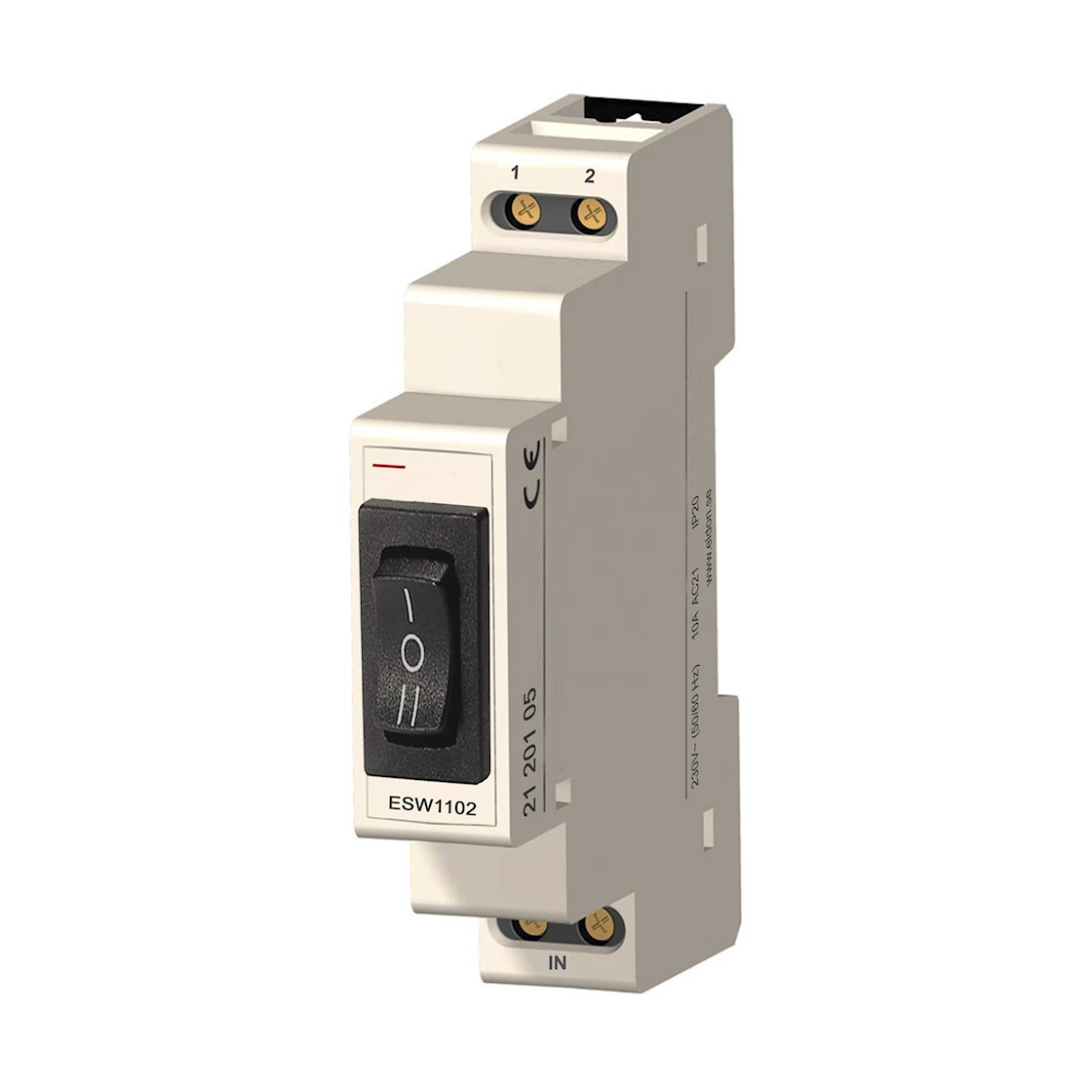 Strömställaren klarar laster upp till 10A vid 230V AC och har tydlig indikering av lägespositioner.